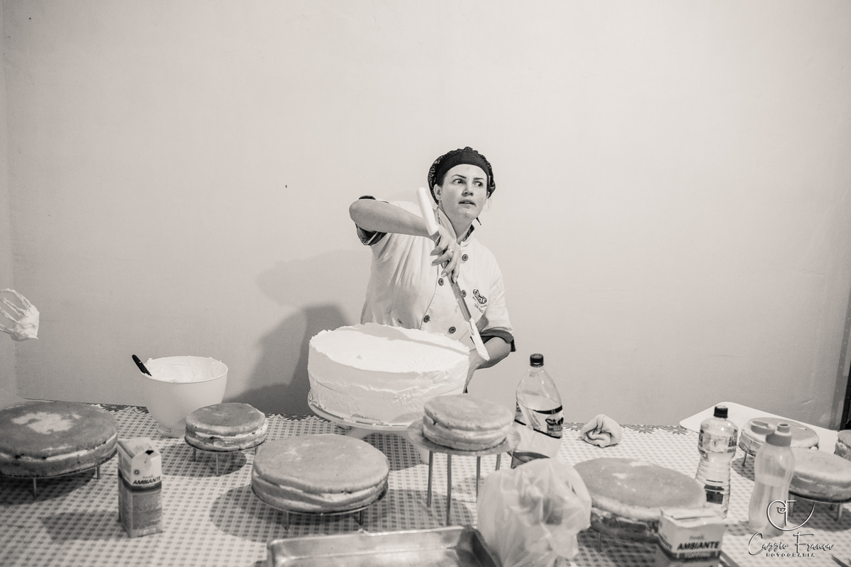 E que casamento emocionante!!! Cheio de surpresas... uma delas é a noiva confeitando o próprio bolo!!! Acredita???